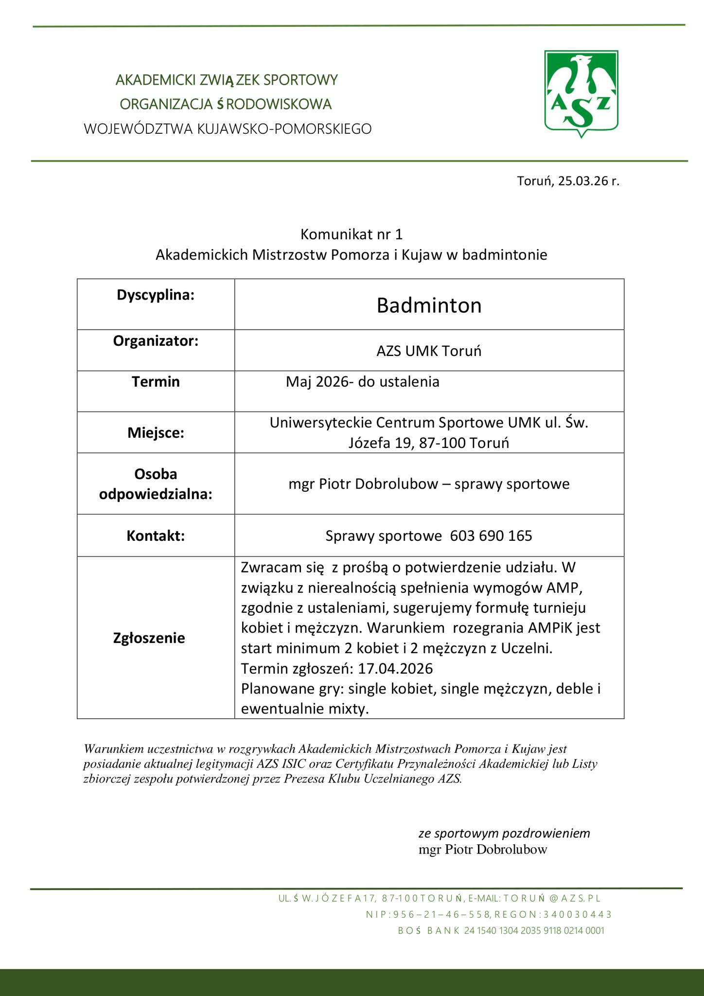 Gospodarz: AZS UMK Toruń