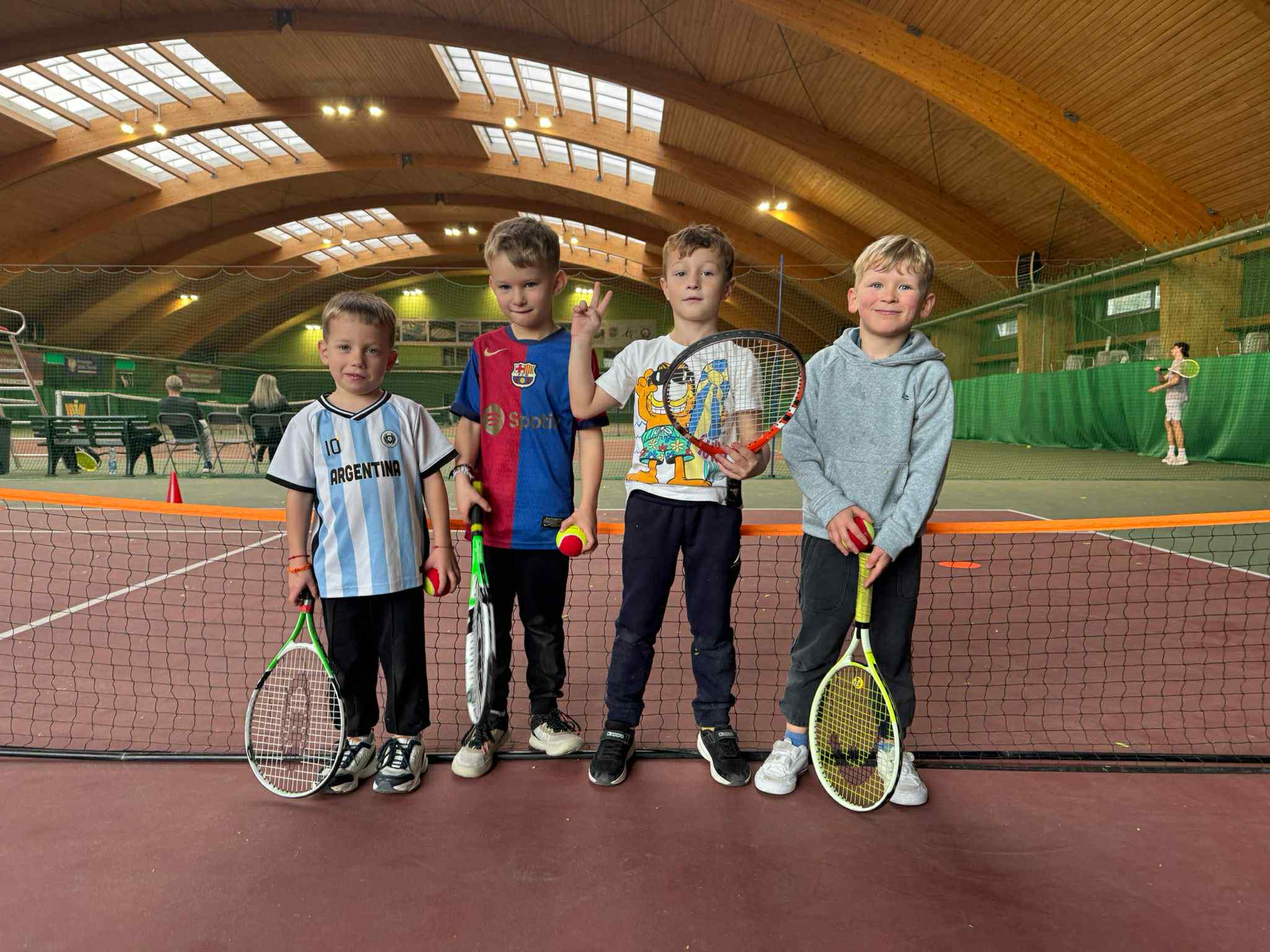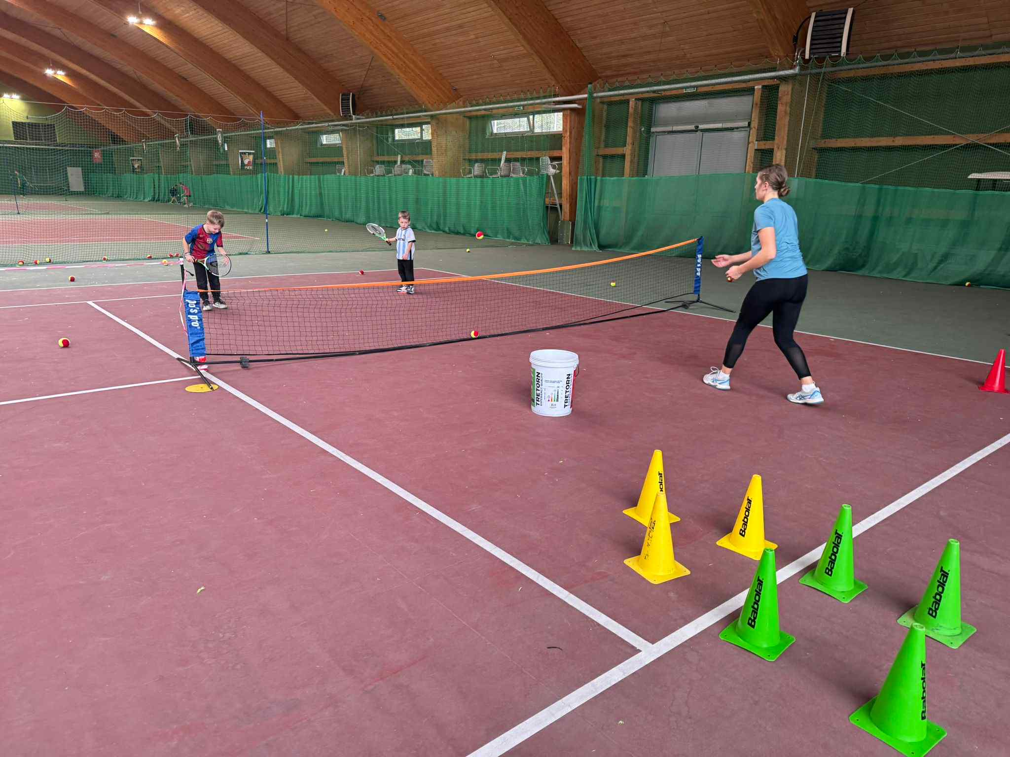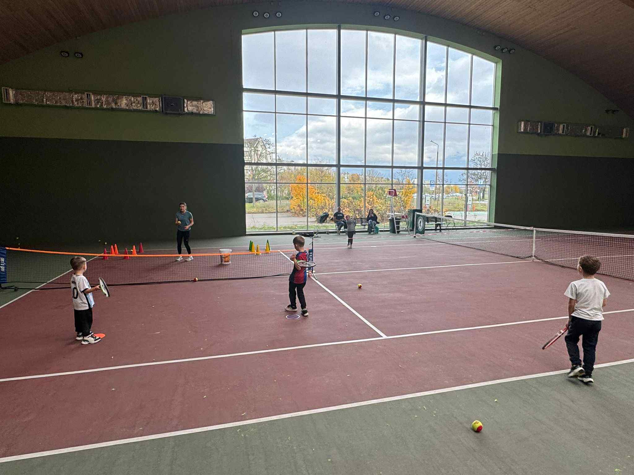 Zajęcia z gier i zabaw ruchowych dla dzieci organizowane są na korcie tenisowym, gdzie najmłodsi z entuzjazmem ćwiczą koordynację, refleks i współpracę z wykorzystaniem rakiet!